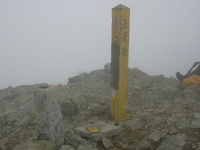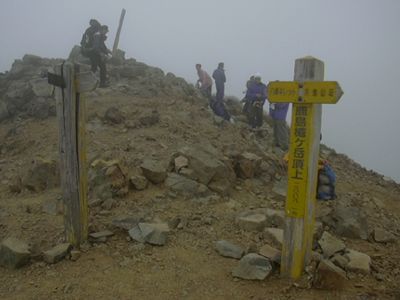 山頂まであと5分というあたりで、なんと山頂にガスがかかり始めた。