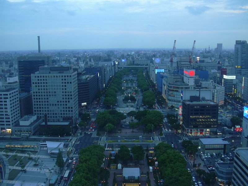 名古屋テレビ塔の展望フロアから、久屋大通の栄方向を望む。夕方に撮影。