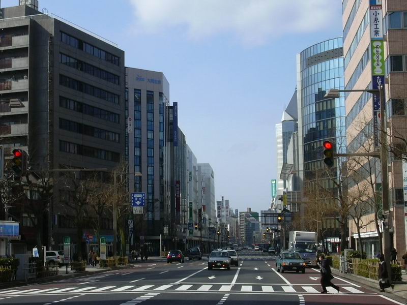 新潟市中心部のメインストリート。鏡橋交差点付近で撮影。