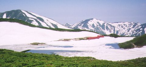 なんとか長い雪渓を登りきるが、葱平のあたりでばててしまう。そこからはゆっくり歩き、どうにか村営宿舎にたどりつく。