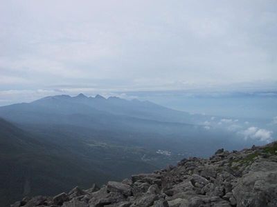 蓼科山頂より、南八ヶ岳(一番高いのが赤岳) |
