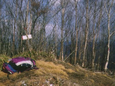水場はテープを頼りに5分ほど下ったところにあった。一部凍っている。 今夜はたった一人でさびしいので、FMを聞きながら酒を飲む。 酒が焼酎1合のみと少ないのが心残りだった。気温を見ると、-10℃まで下がっていた。 夜中はやはり寒かったが、落ち葉の上だったので快適だった。 朝起きるとまくら元の水が半分凍っている。この日も天気はよい。 テントを片づけ出発する。往路を戻るだけなので、順調に進むが腹痛をおこしてしまう。 東仙波手前で…(以下、略)。 |