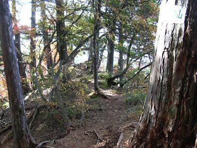 樹林帯の帳付山頂 |