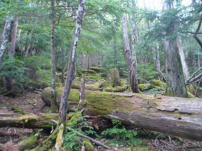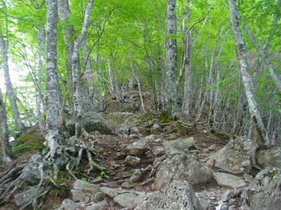 笹や樹林帯など、なかなか変化のある道だった。 |